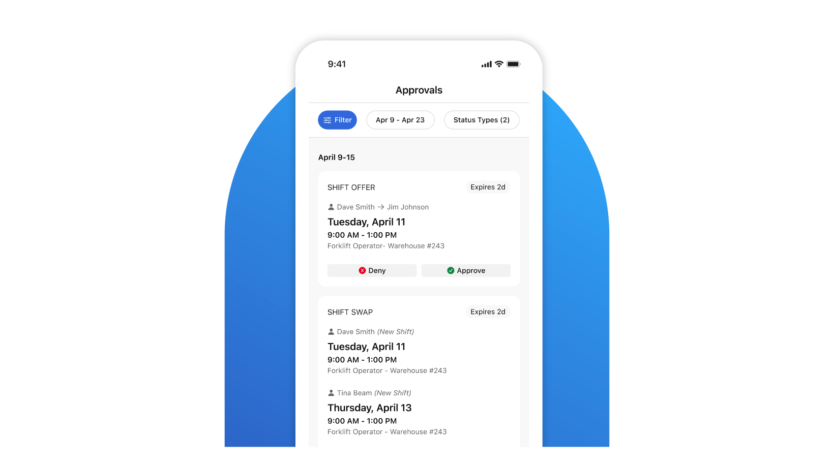 Let employees update their availability, check their schedule, enroll in benefits, and more through the app.Â